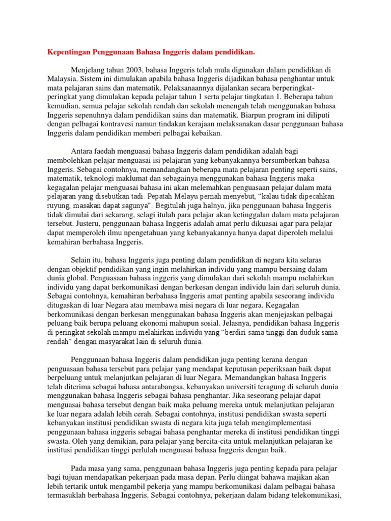 Kepentingan Penggunaan Bahasa Inggeris Dalam Pendidikan Pdf